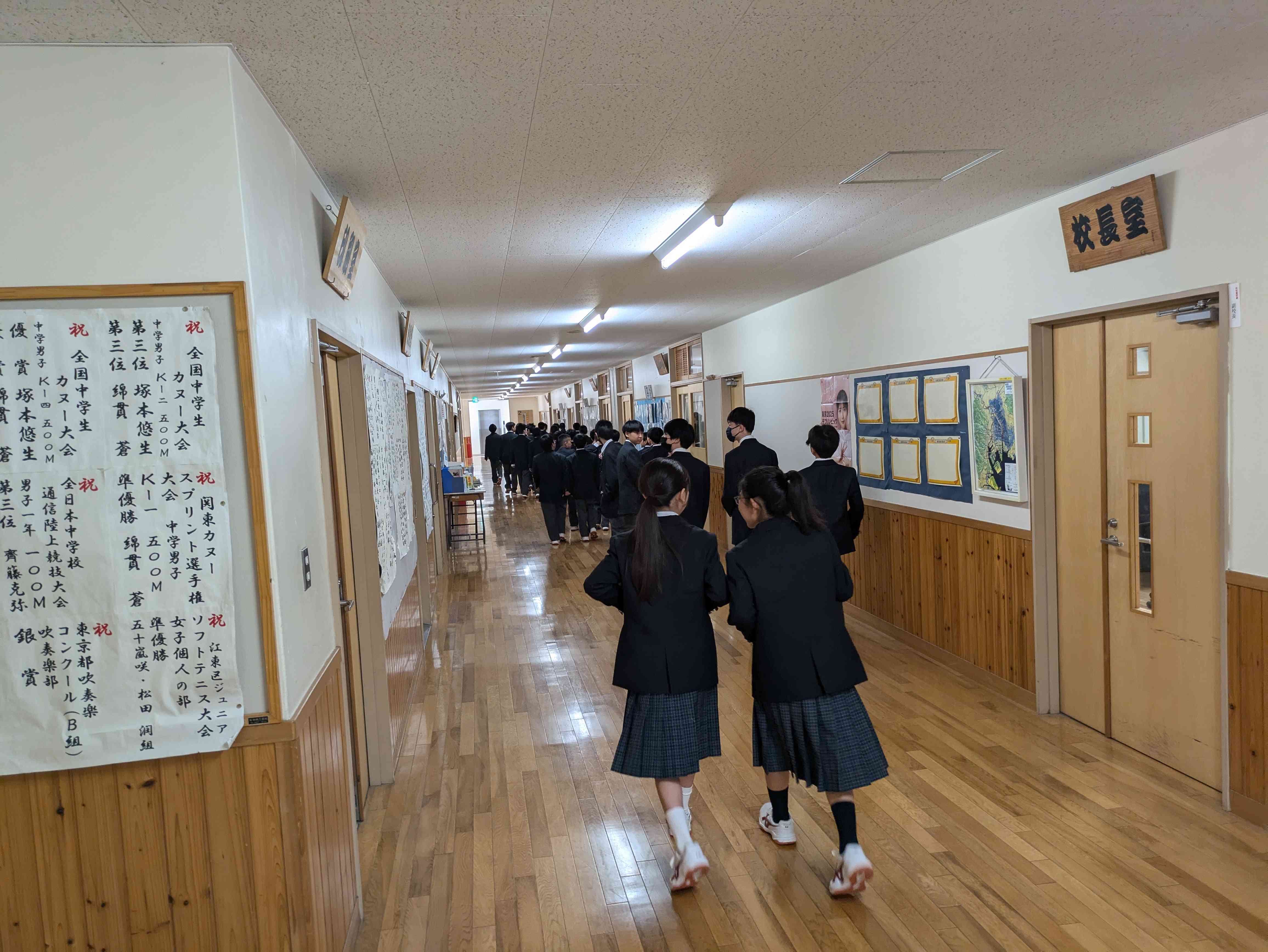 職員室前がにぎやかなので、見てみると1年生が校内巡りをしています。担任の先生の説明を、うなずきながらよく聞いています。 すれ違うと笑顔で挨拶をしてくれました。 この笑顔を大切に成長してほしいと思います。