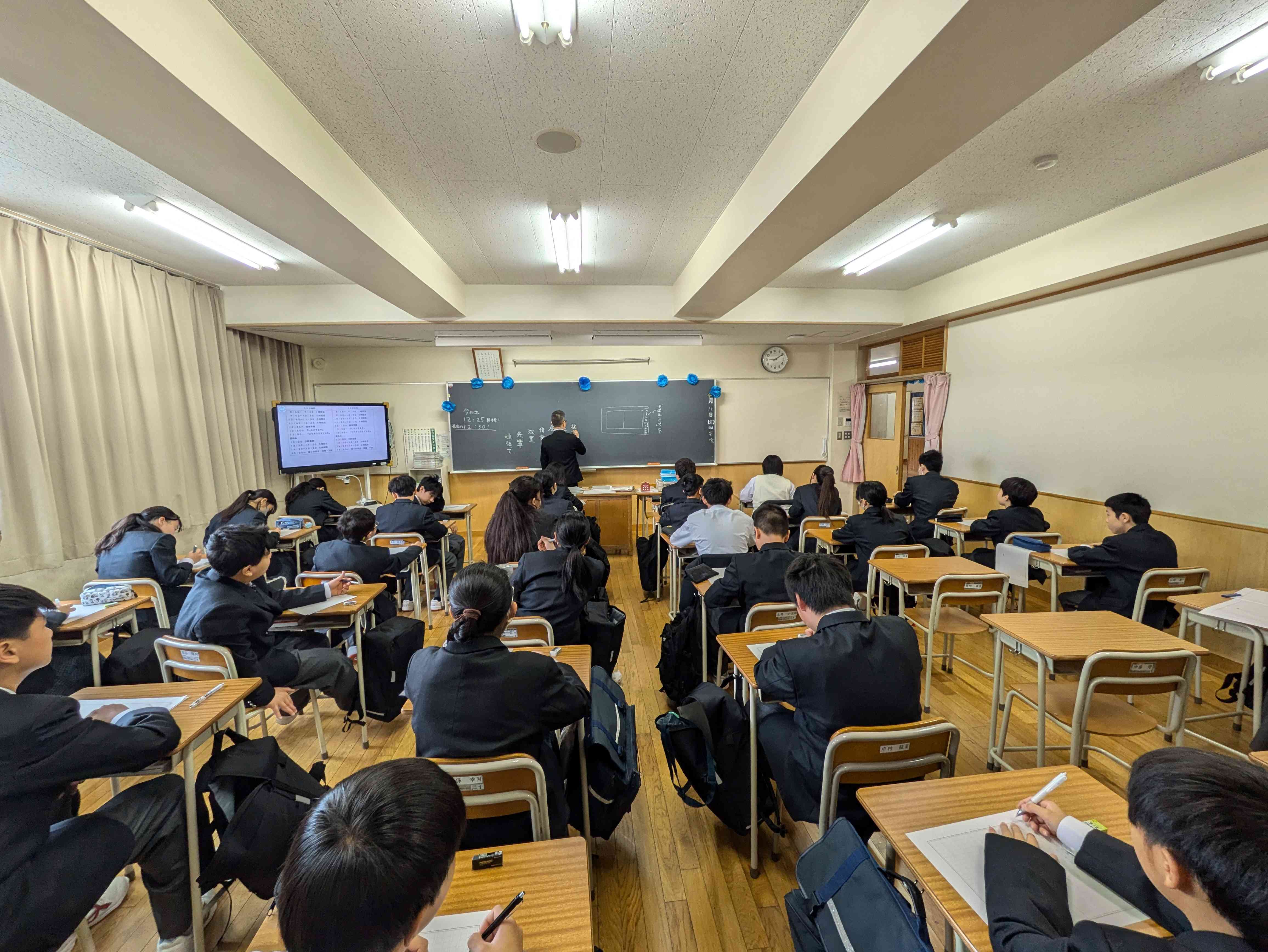 1校時、1年生は学級開きの学活を行っています。 委員・係決めをしているクラスもありましたが、このクラスは「中学生になって」の作文を書いています。 わからない漢字の声が聞こえると、担任の先生が説明しながら、黒板に書いています。みんな、漢字をどんどん憶えてください。