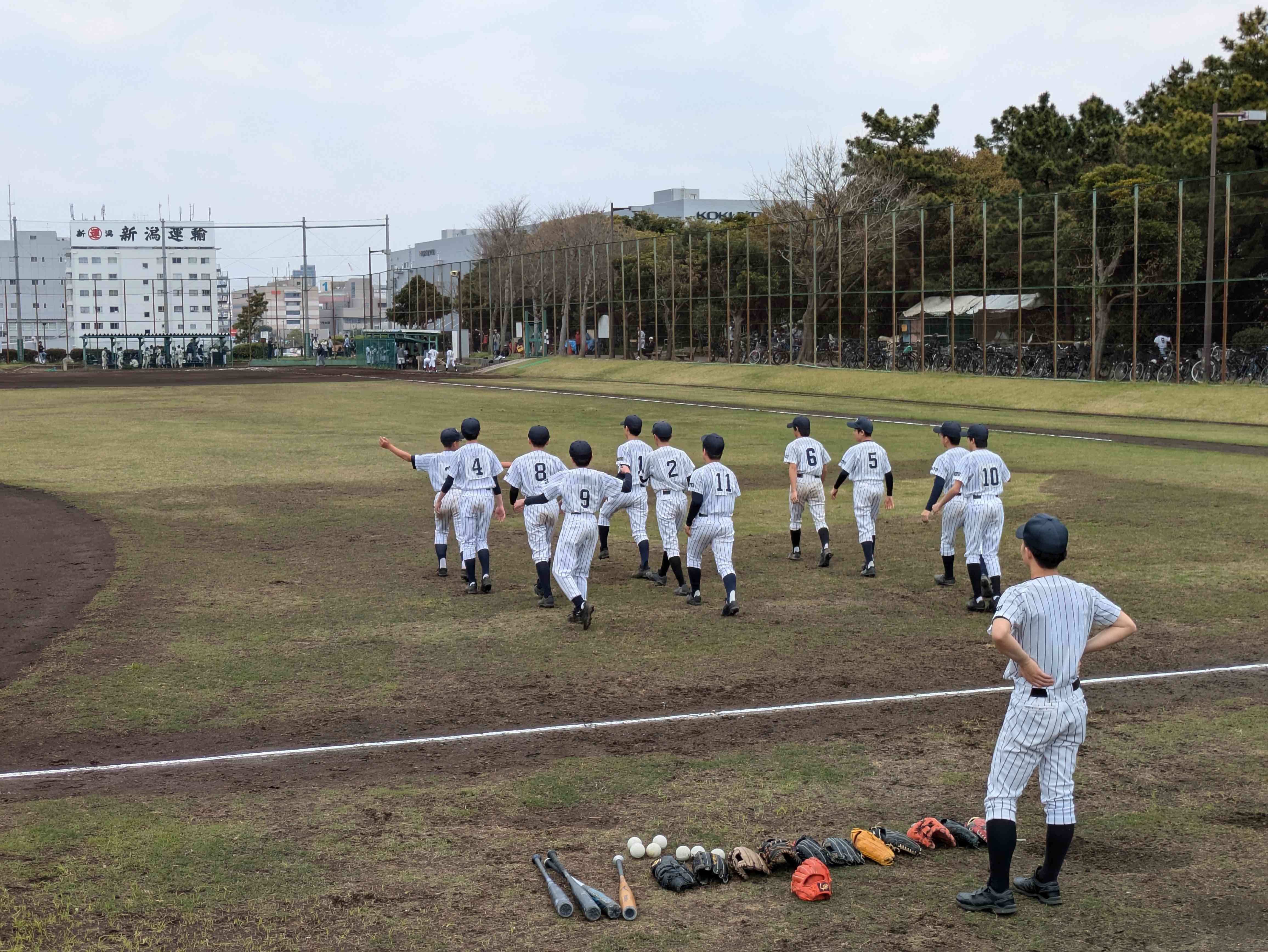 4/12(土)夢の島野球場で野球部が公式戦に臨みました。 開始前の雰囲気もいつも通り、チームワークの良さがうかがえます。勝敗は時の運。最後まで諦めずに頑張ってほしいと思います。