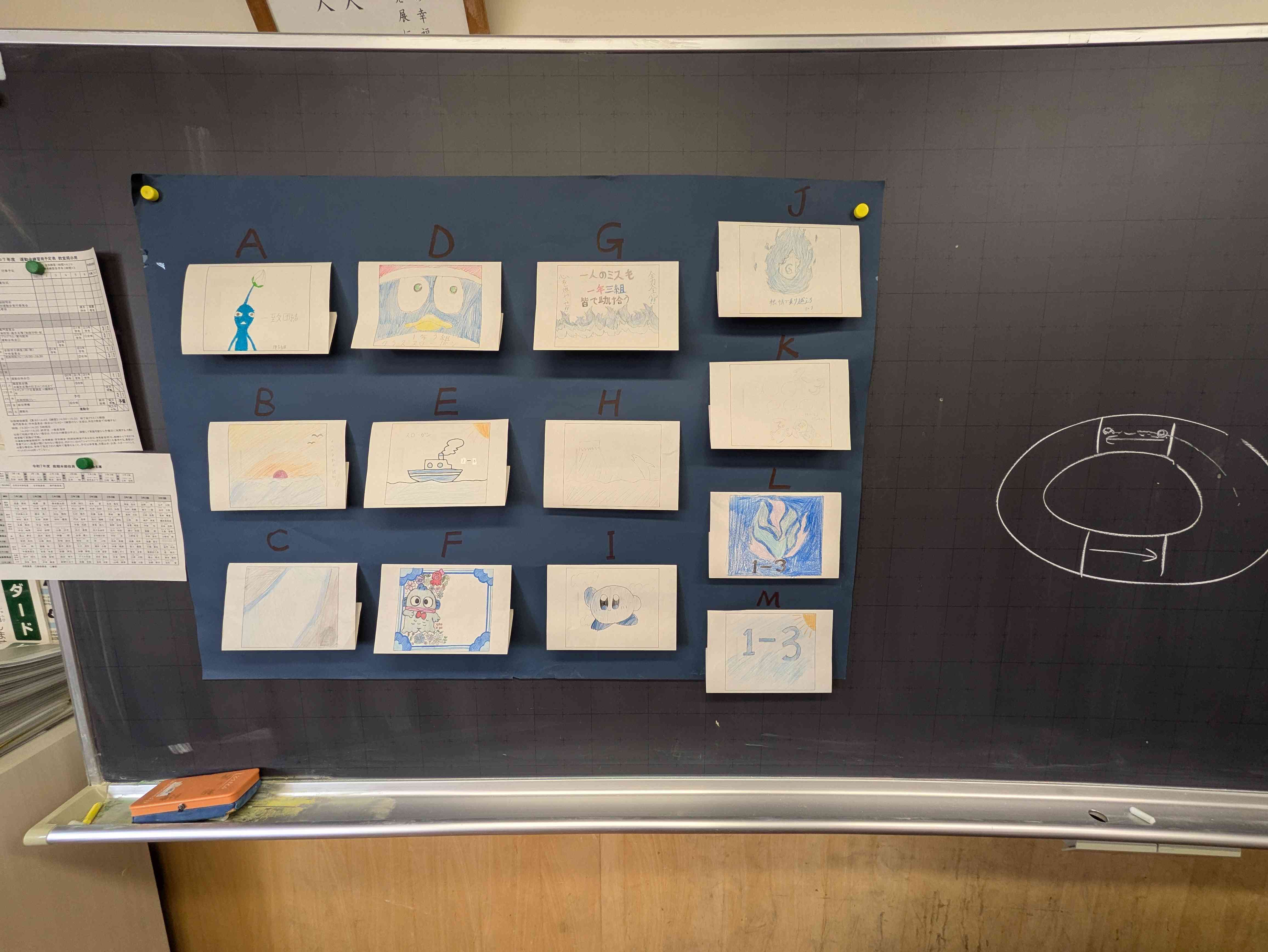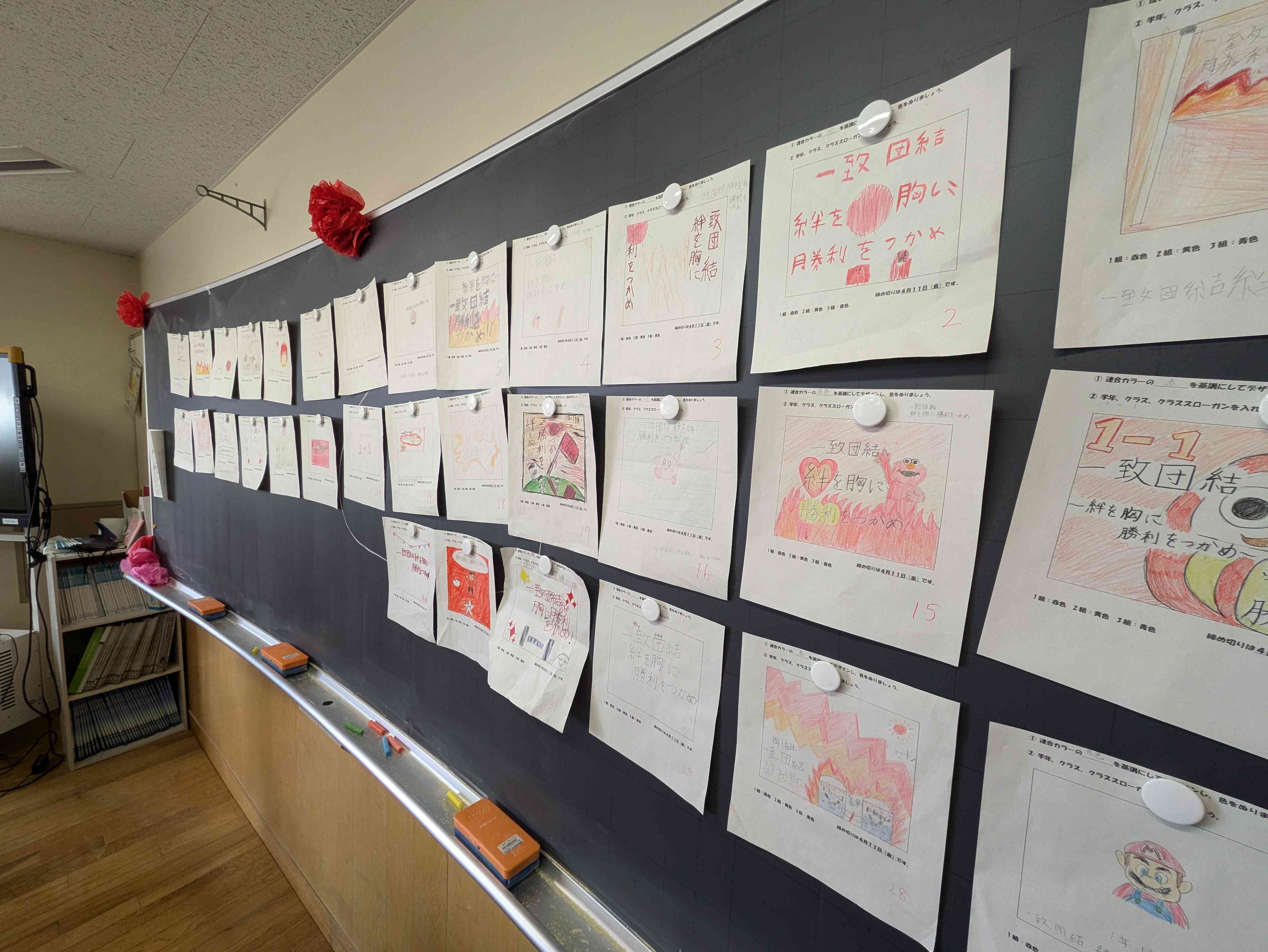 一校時、1年生は学級活動で運動会のクラス旗を選んでいました。 私も一緒に見させてもらいましたが、みんな上手です。 選ぶのは、難しいですね。