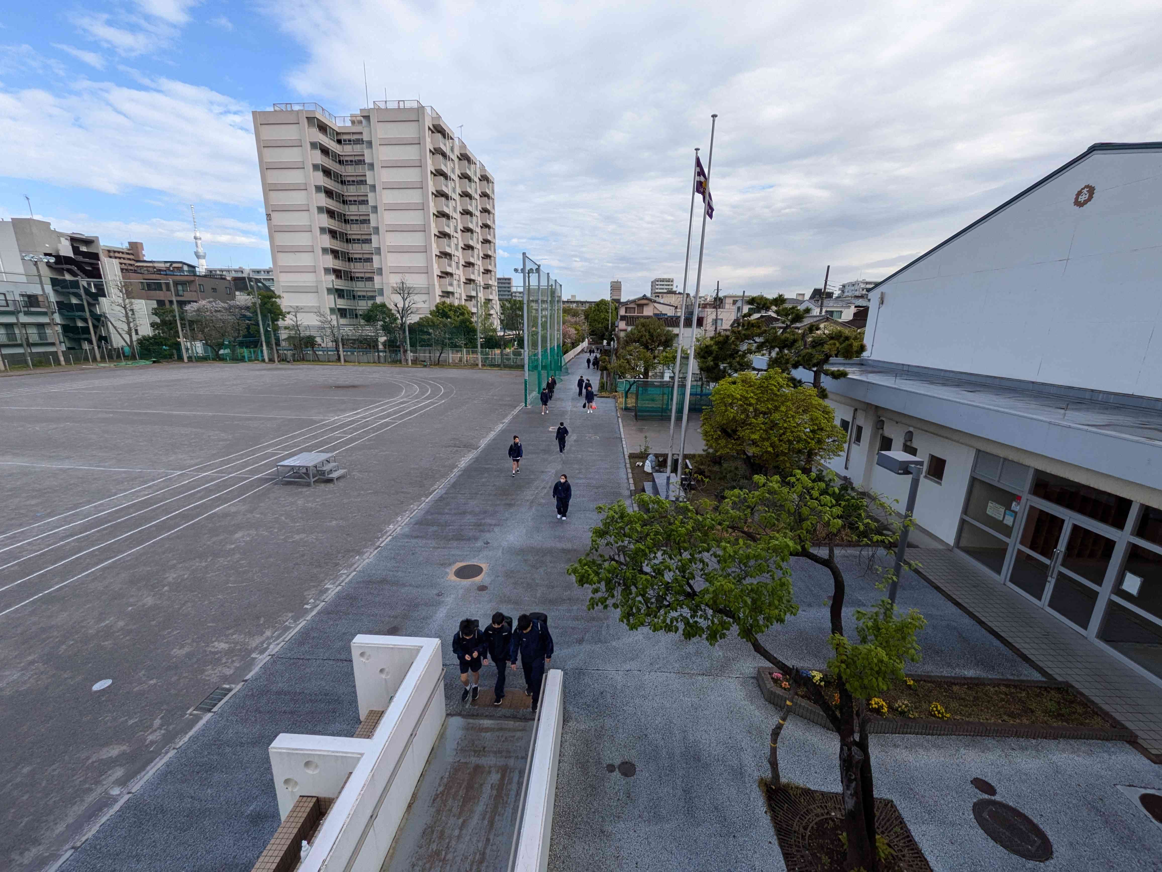 おはようございます。 本日の朝の登校風景です。 いつもより時間を遅らせて撮影しました。 今日は運動会全校練習があります。 みなさん、頑張りましょう。