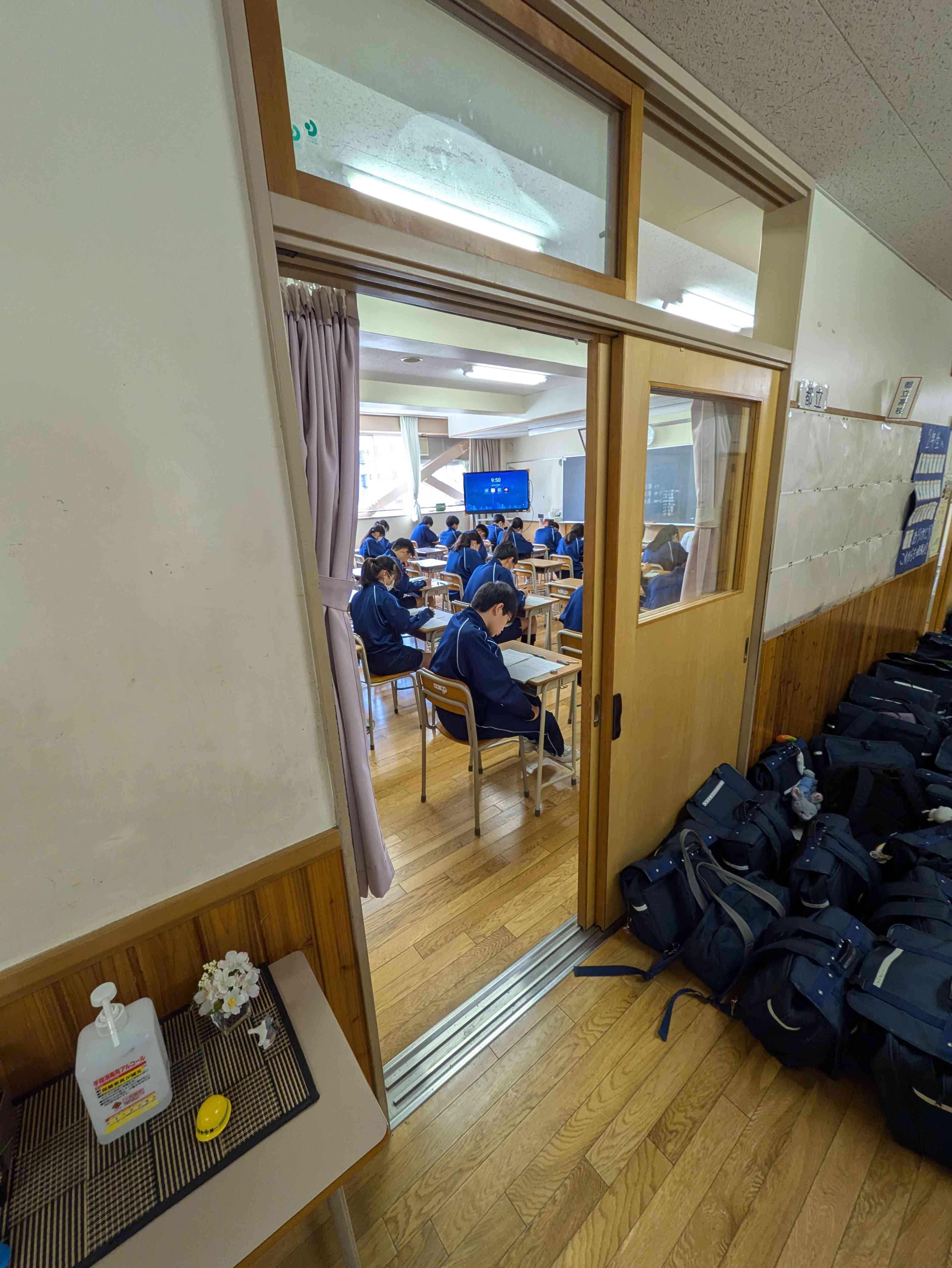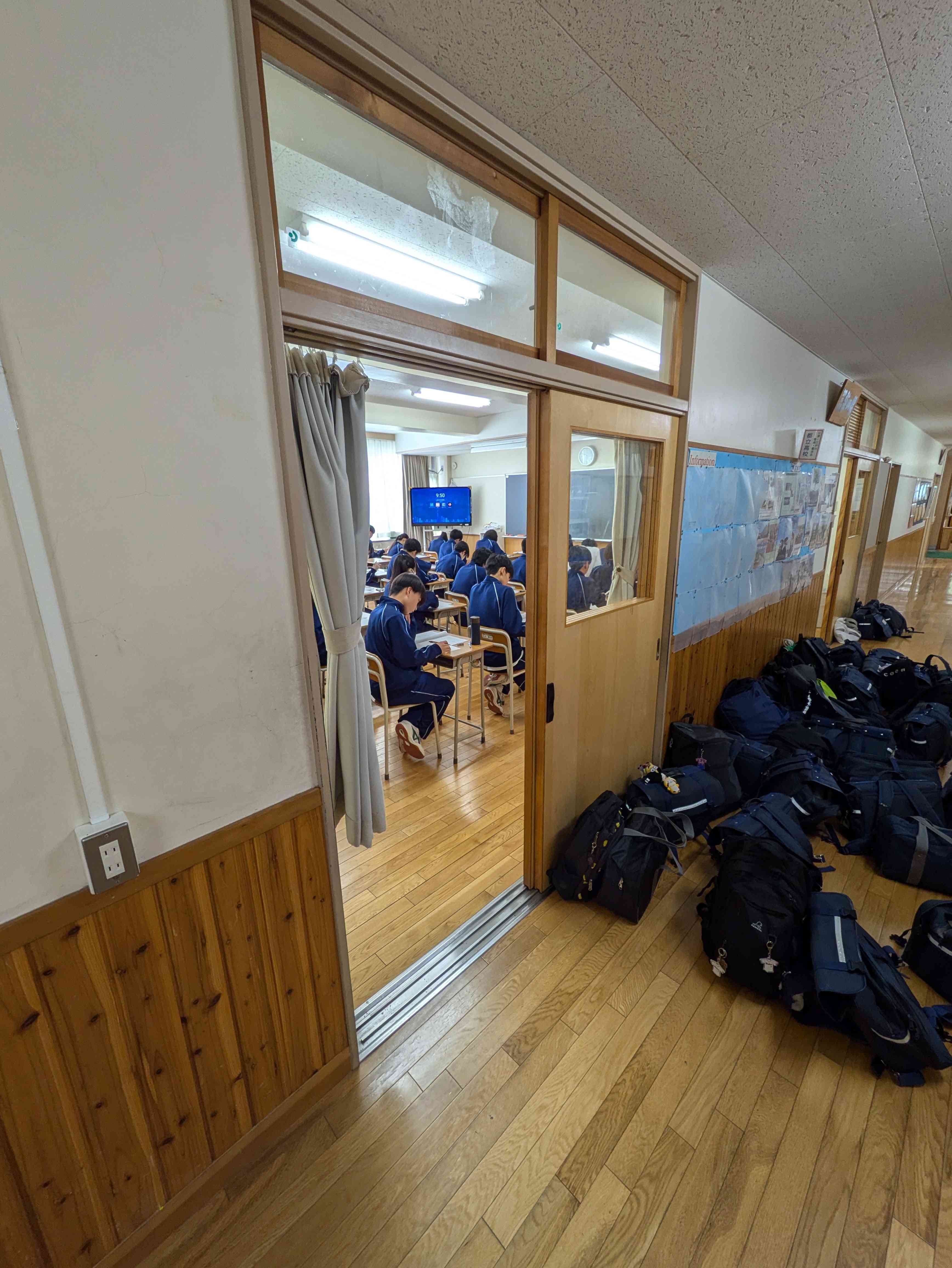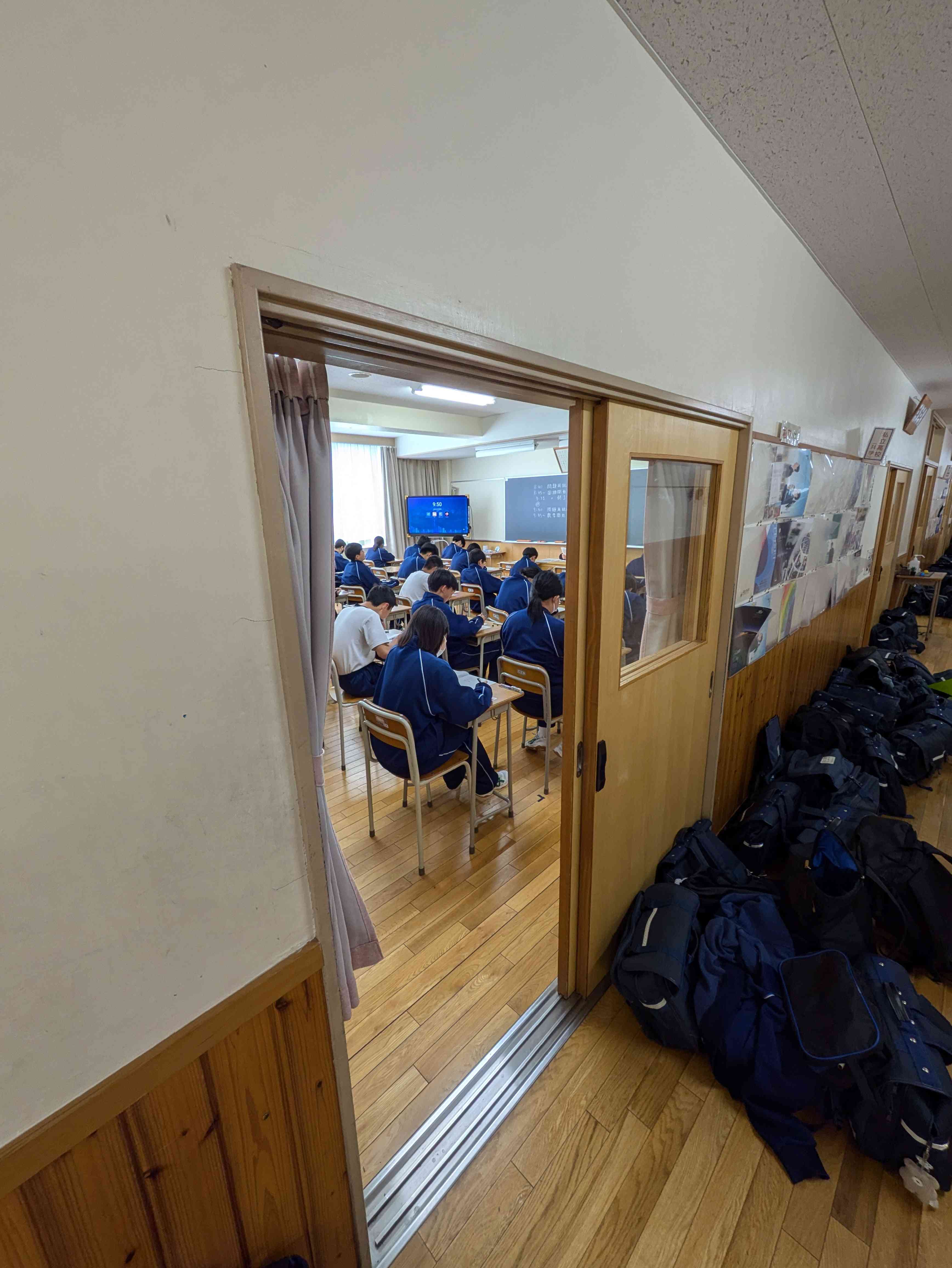 2校時、3年生は学力調査数学を実施しています。 どのクラスの生徒も真剣に取り組んでいます。 一生懸命な姿勢が目立つ3年生です。