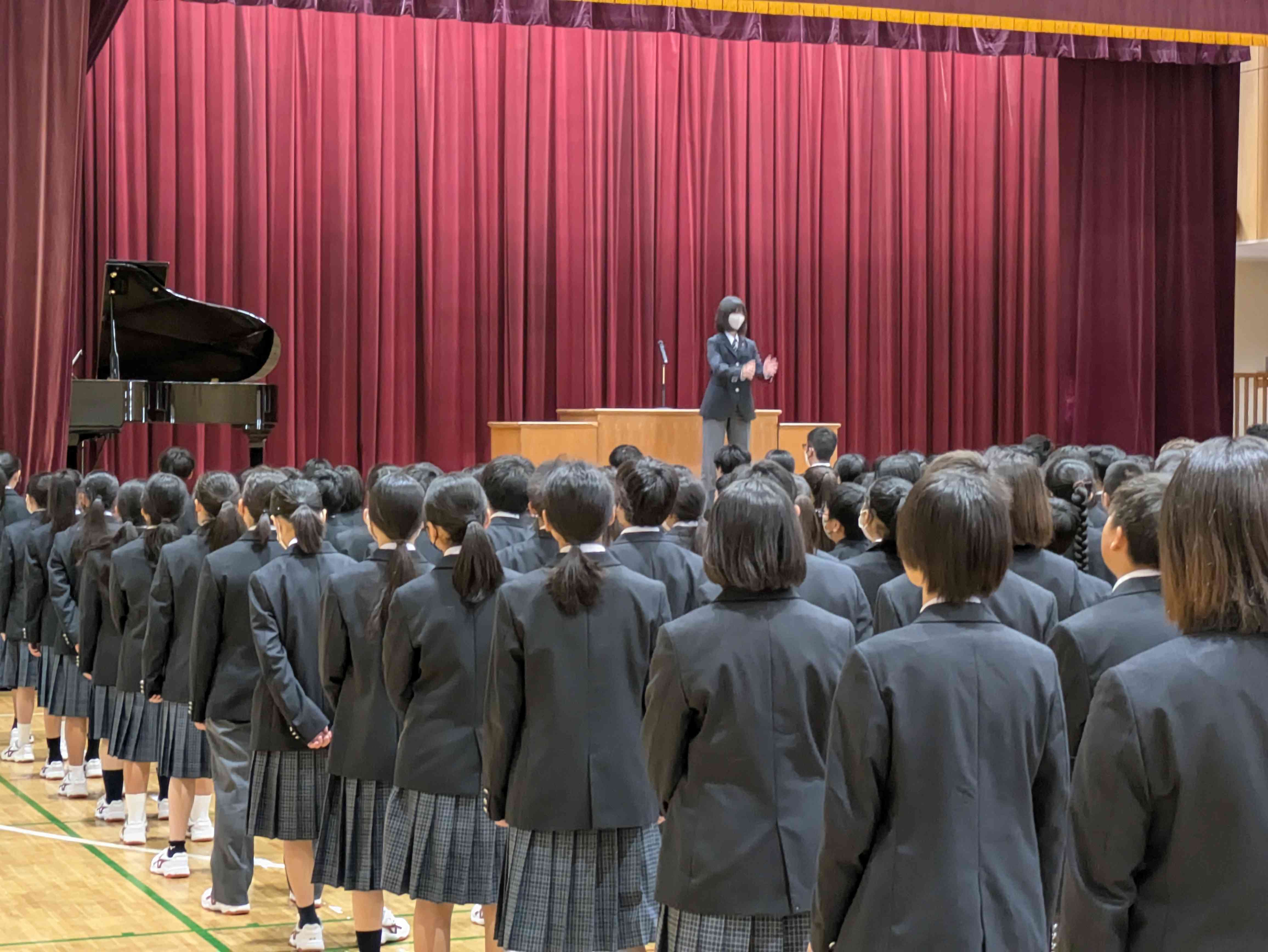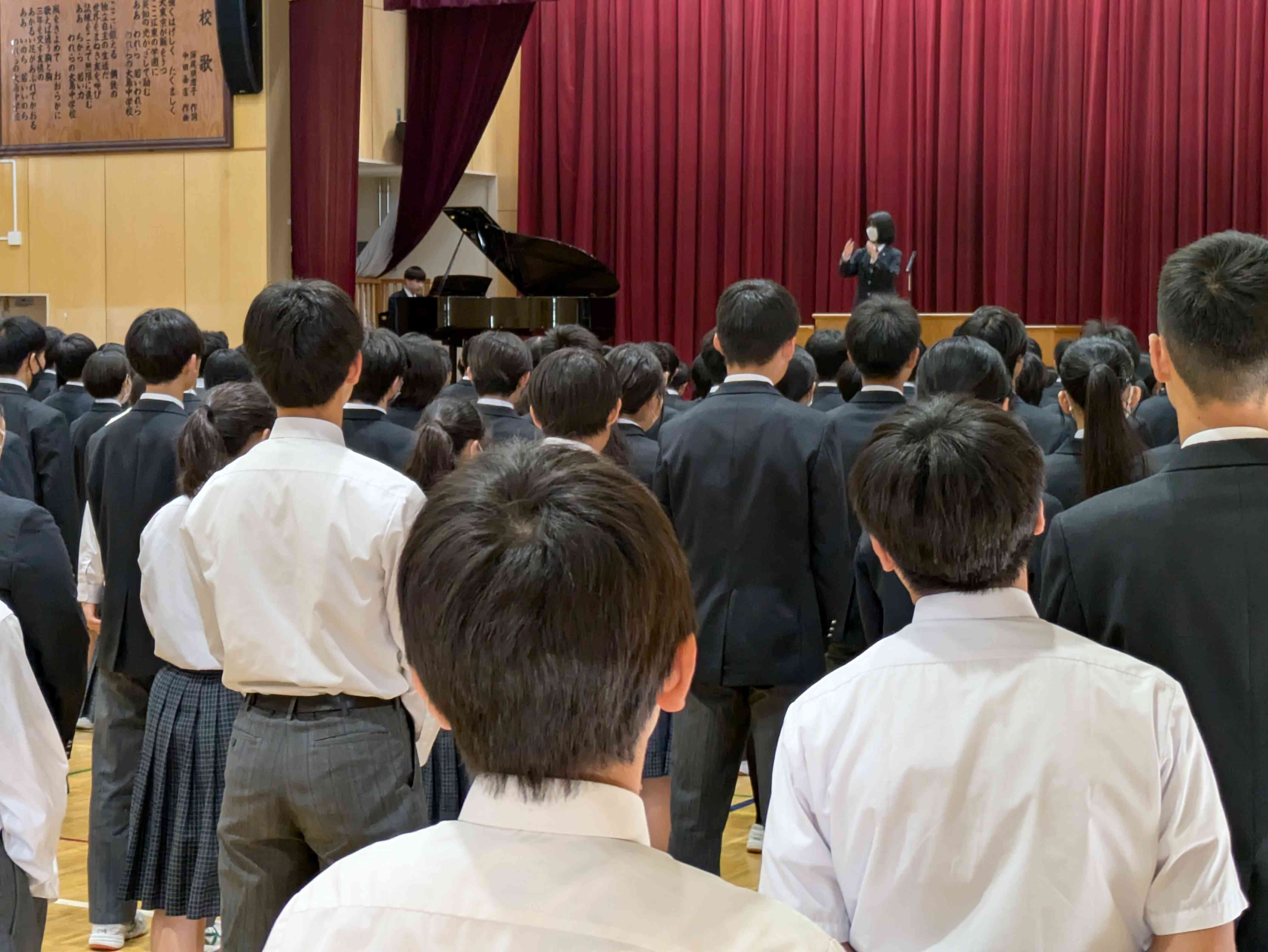 GWが終わり、みんなの元気に登校していました。 今日から教育実習が始まります。全校朝礼で実習生の紹介を行いました。実習生の歓迎の意味を込めて、最後に校歌を歌いました。