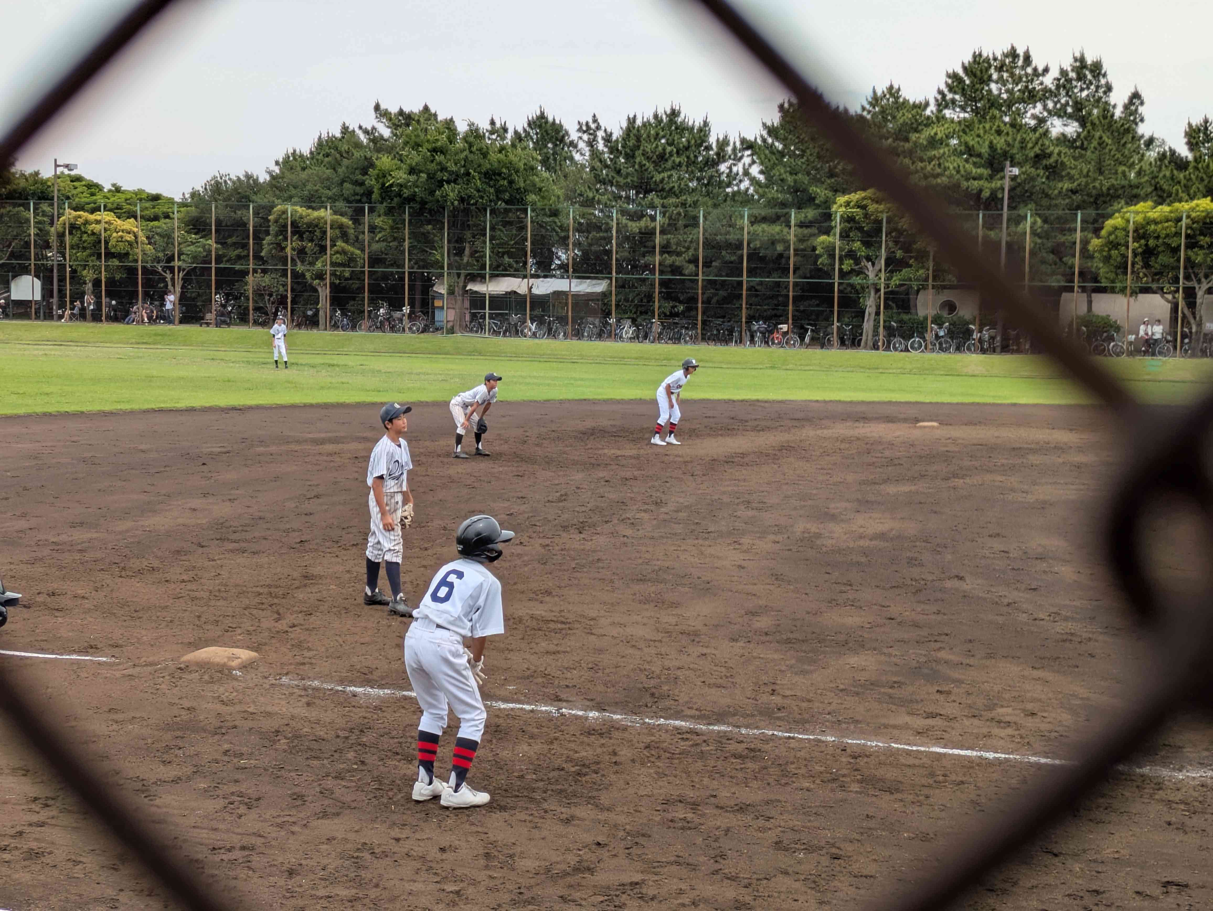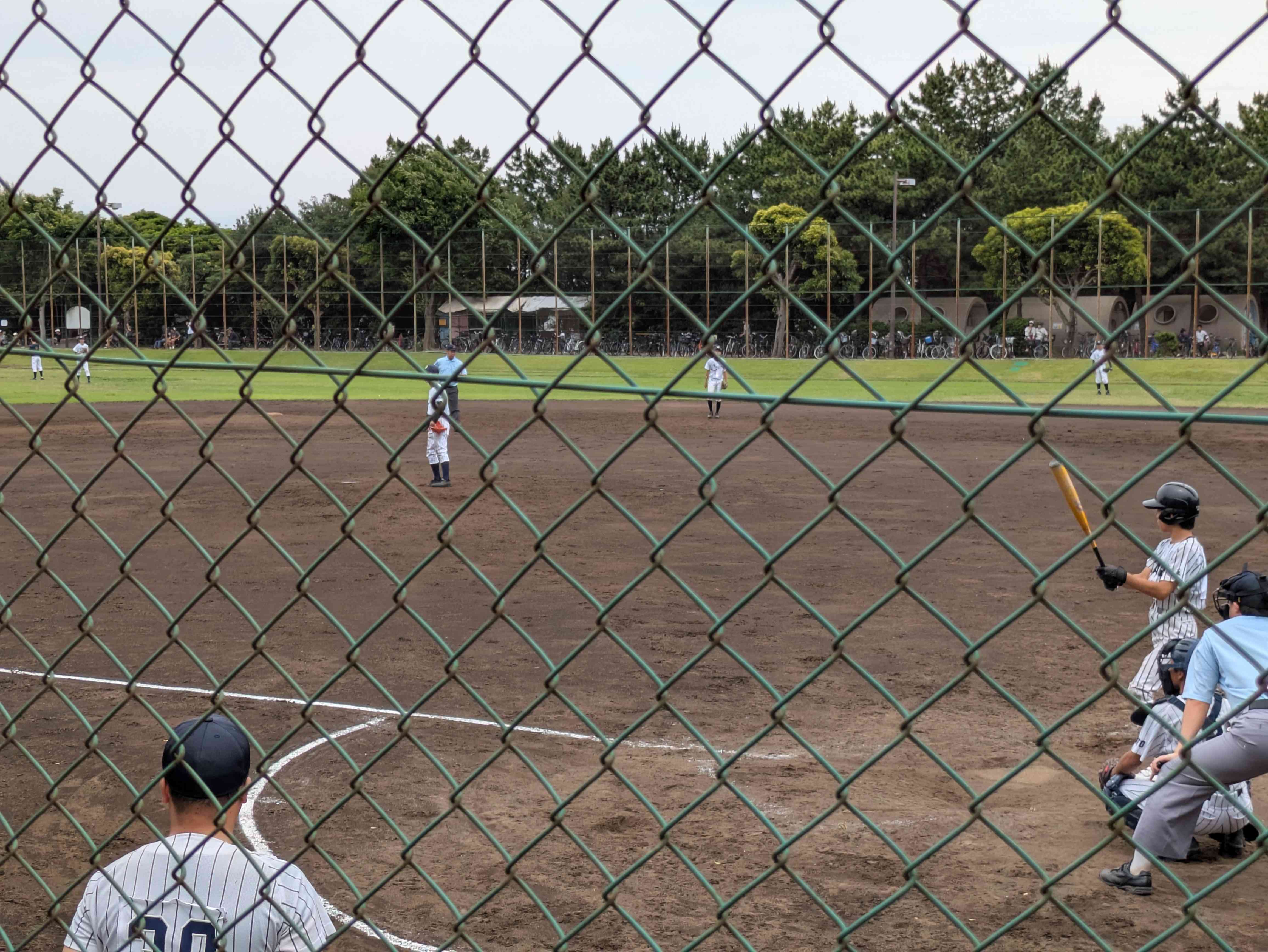 野球部の公式戦です。 残念ながら、リードされています。 諦めず、がんばれ大中