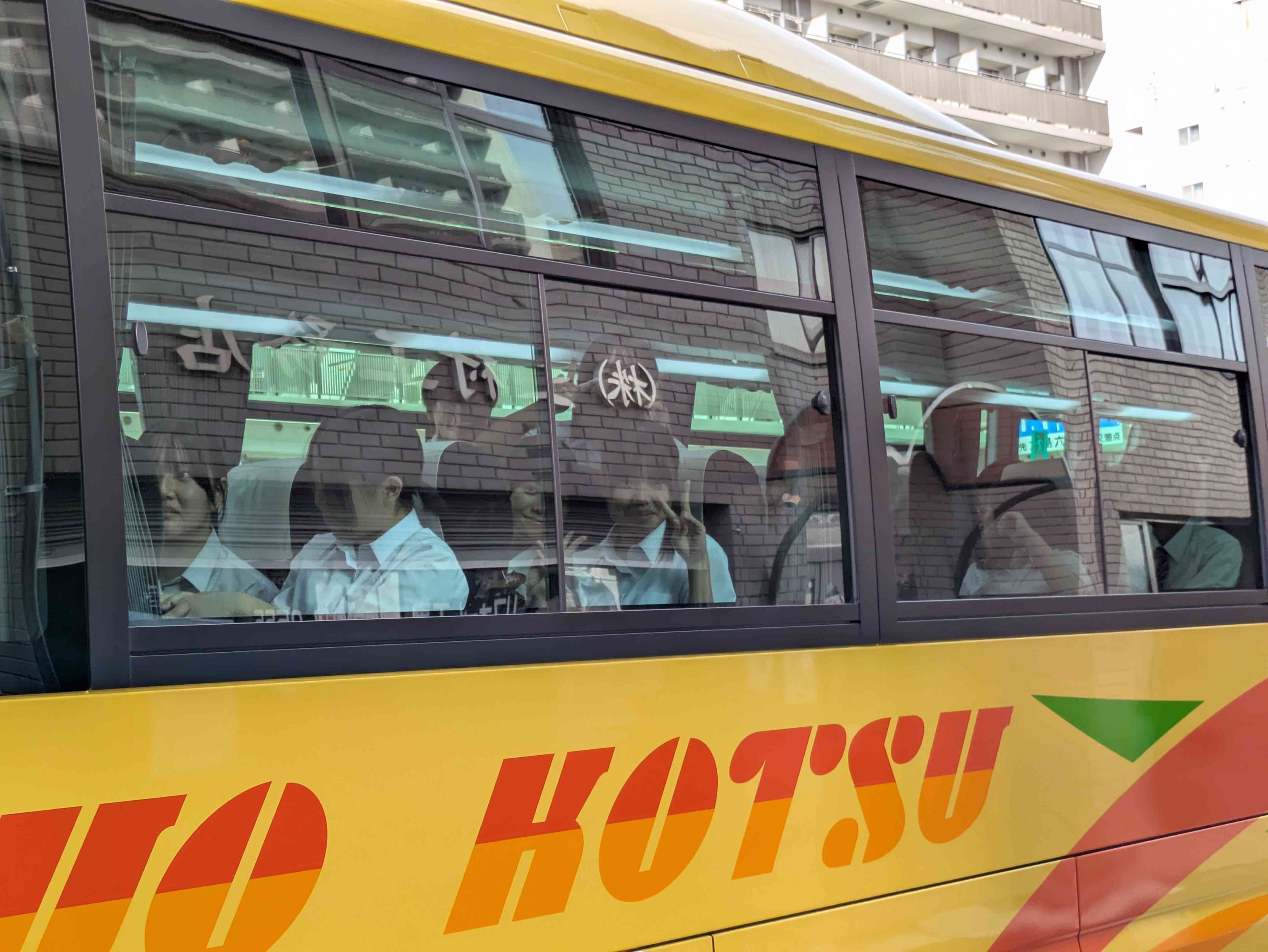 本日、2年生は、TGG校外学習を実施します。 英語について学びを深める良い機会です。 学校ではない場所で、英語について学びを深めてください。 写真は出発の様子です。